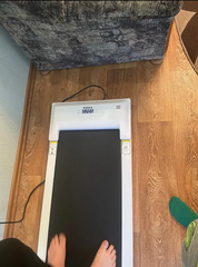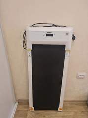 Покупала дорожку для ходьбы и в дальнейшем для работы стоя. Хорошие амортизаторы, довольно тихая. Для меня тяжёлая, но зато крепкая, железная. Пришла с царапиной сбоку, но не критично. Приложение не устанавливала, включаю тренировку на телефоне(самсунг), он отлично считает шаги, скорость и расход калорий) Белый цвет отлично вписался в интерьер) Смазала перед первым использованием без ослабления ленты) Рекомендую